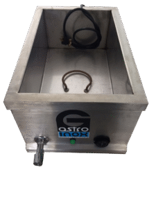 El baño maría industrial es un equipo diseñado para mantener alimentos calientes a temperatura constante sin alterar su textura ni sabor. Funciona mediante un sistema de calentamiento indirecto con agua, ideal para sopas, salsas, arroces y guarniciones. Fabricado en acero inoxidable, es resistente, higiénico y fácil de limpiar. Incluye recipientes gastronorm, control de temperatura y grifo de desagüe para mayor practicidad. Es esencial en buffets, restaurantes, hoteles y servicios de catering que requieren conservación segura y profesional de alimentos calientes.