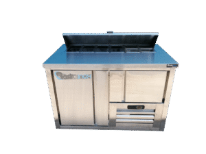 La nevera tipo mesón mise en place combina superficie de trabajo y refrigeración en un solo equipo funcional y compacto. Diseñada en acero inoxidable, brinda higiene, resistencia y una apariencia profesional para cocinas industriales. Cuenta con puertas o cajones refrigerados en la parte inferior para mantener ingredientes frescos y organizados al alcance del chef. La superficie superior permite montar estaciones de preparación rápida y eficiente. Ideal para restaurantes, hoteles y servicios de catering que buscan optimizar espacio y productividad.